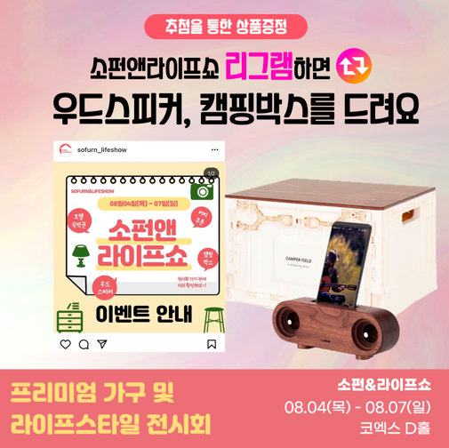 추첨을 통해 감성 가득한 우드스피커와 캠핑박스를 드립니다~!